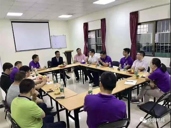 參觀完畢,隨后一行人于第二生產(chǎn)基地培訓(xùn)室進(jìn)行深入交流。會(huì)中,研修班各成員輪流發(fā)表看法,對(duì)優(yōu)鑄近年來迅速發(fā)展以及取得的成果給予充分肯定,同時(shí)對(duì)優(yōu)鑄未來發(fā)展給出很中肯、很有意義的建議。