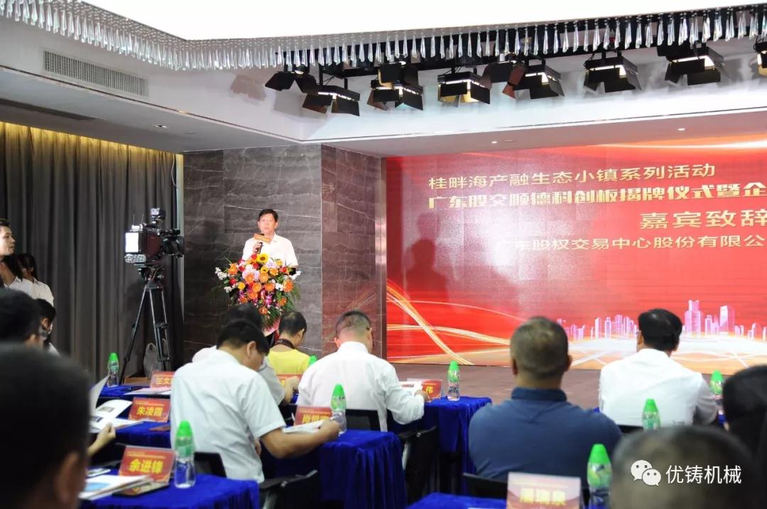 為貫徹落實習(xí)近平總書記視察廣東重要講話精神,率先建設(shè)廣東省高質(zhì)量發(fā)展體制機制改革創(chuàng)新實驗區(qū),發(fā)揮桂畔海產(chǎn)融生態(tài)小鎮(zhèn)和供應(yīng)鏈金融基地優(yōu)勢,2019年8月21日,佛山市順德區(qū)科學(xué)技術(shù)局舉辦桂畔海產(chǎn)融生態(tài)小鎮(zhèn)系列活動之儀式暨企廣東股交順德科創(chuàng)板揭牌業(yè)高質(zhì)量發(fā)展推進(jìn)大會。