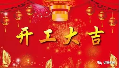 優(yōu)鑄機械今天正式開工,將為各位業(yè)界朋友繼續(xù)提供優(yōu)質的產品和服務!在新春之際,公司全體同仁恭祝大家生意興隆、萬事如意、家庭幸福!