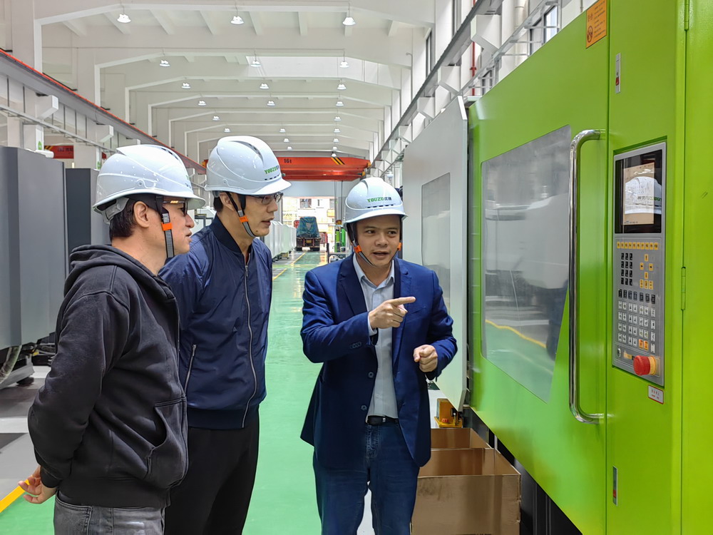 在洪浩坤總經(jīng)理的陪同下,商會(huì)一行參觀了企業(yè)生產(chǎn)車(chē)間和最新研發(fā)的新機(jī)型,了解機(jī)器的生產(chǎn)過(guò)程及其應(yīng)用前景。
