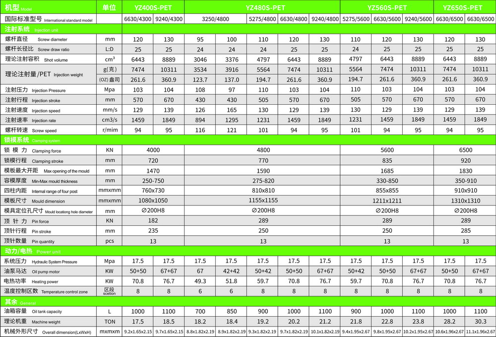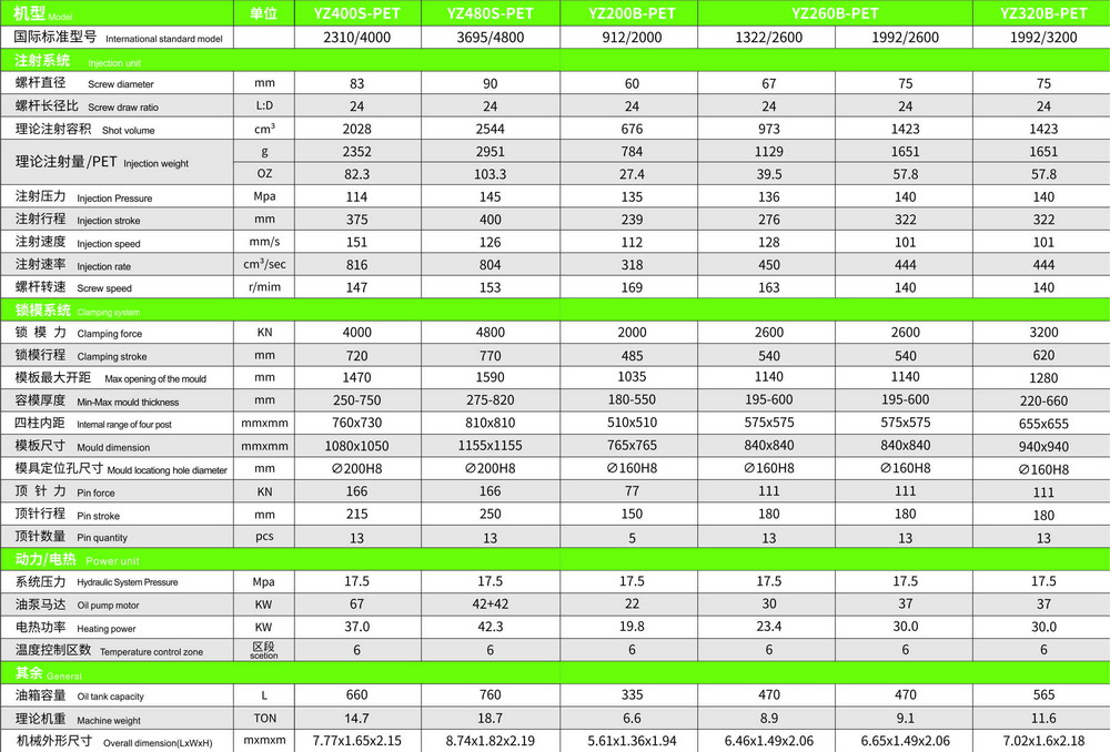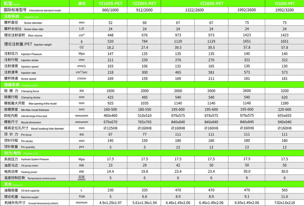 PET Injection Molding Machine Parameter (for Beverages Preform, Water & Oil Preform)