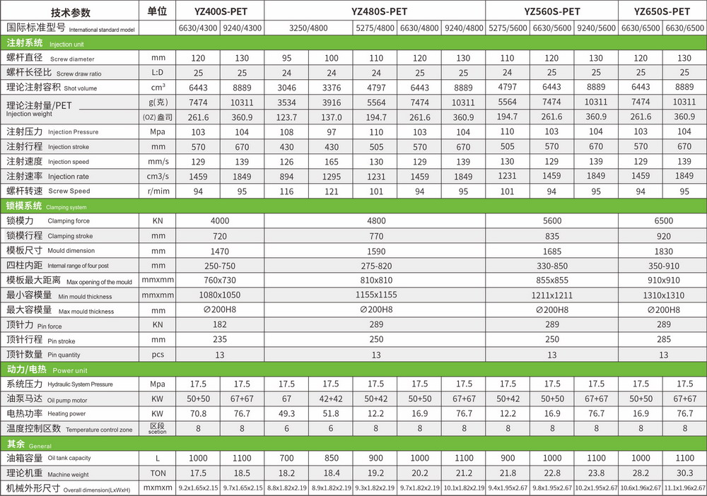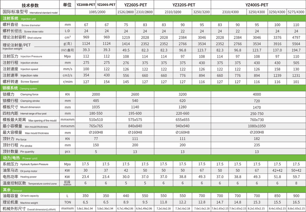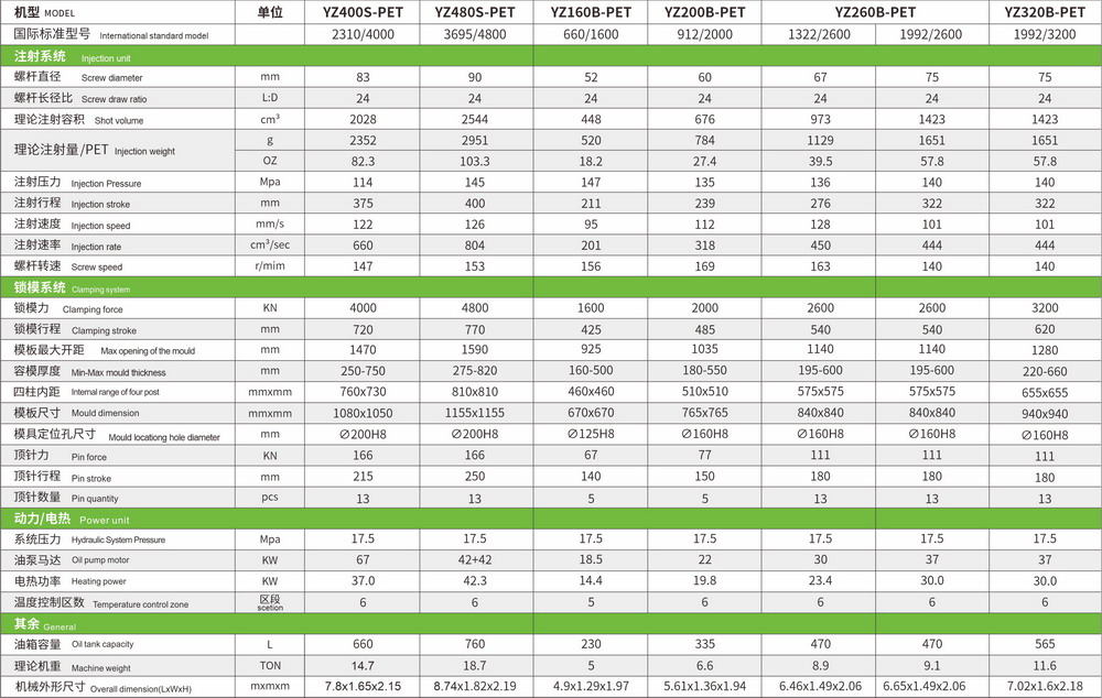 PET Injection Molding Machine Parameter (for Beverages Preform, Water & Oil Preform)